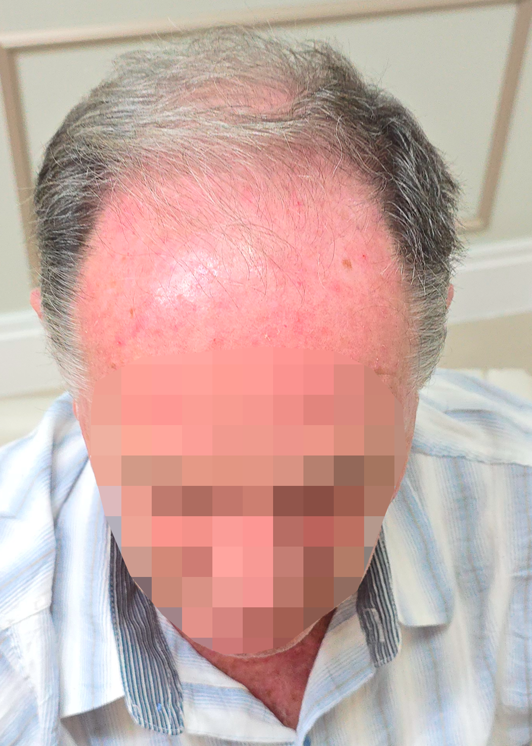 Quando o couro cabeludo começa a ficar aparente sob luz direta.